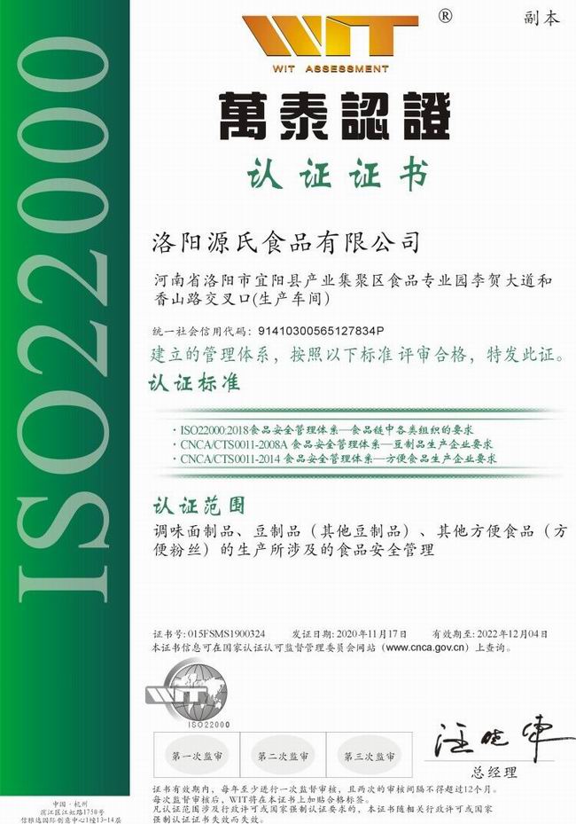 ISO22000食物清静治理系统认证